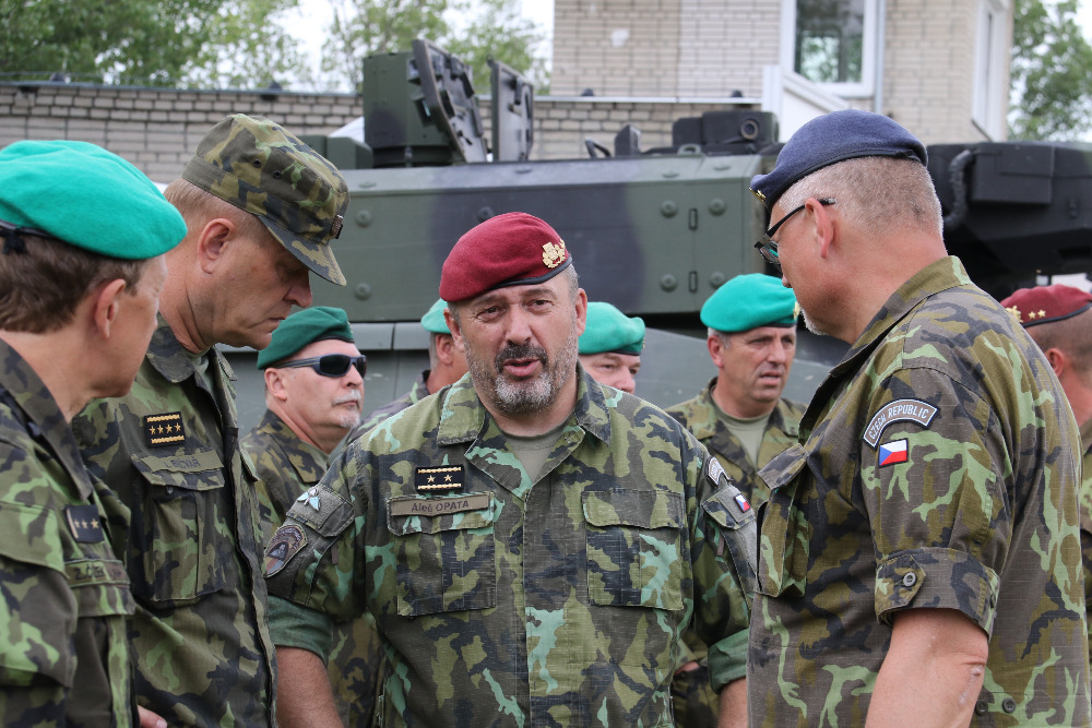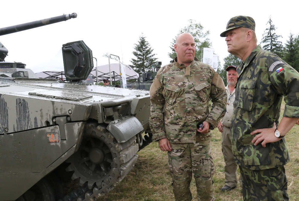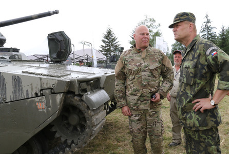 Nejmodernější bojová vozidla si do Přáslavic přijel prohlédnout i armádní generál Bečvář