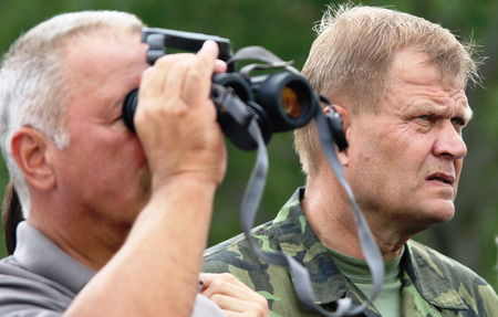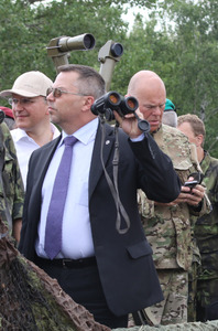 Ukázku vojenské techniky zhlédl náměstek ministra obrany Daniel Koštoval (vlevo) a další hosté