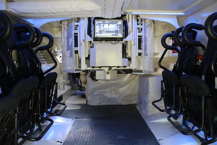 Náčelník Generálního štábu Josef Bečvář si prohlíží vnitřní prostor jednoho z vozidel