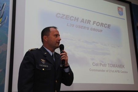 Velitel 21. základny plukovník Petr Tománek v rámci úvodního brífinku L-39 Users Group