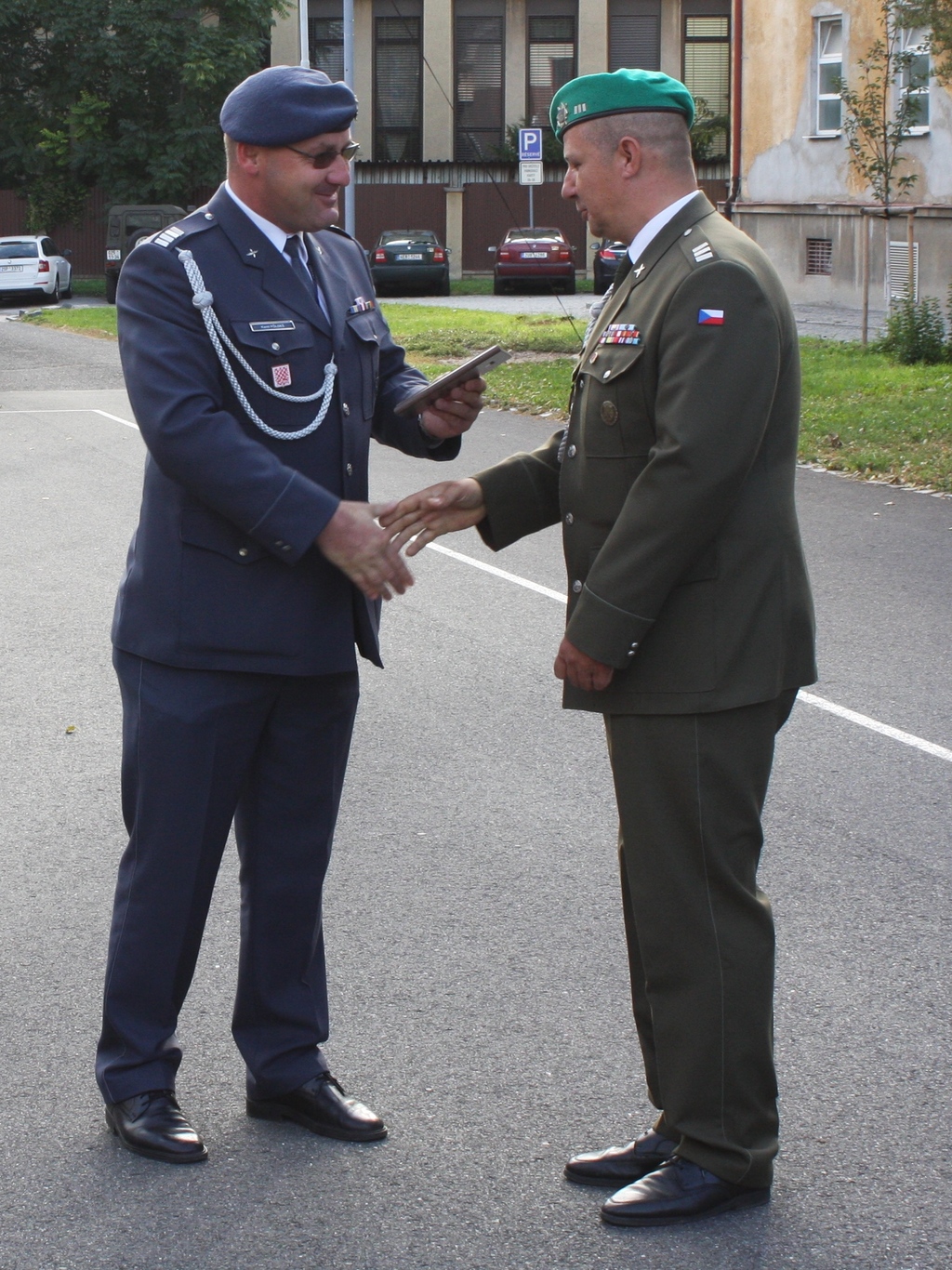 Předání pamětní plakety vrchnímu praporčíku praporu Čestné stráže AČR Pavlu Dubnovi, který celý kurz organizačně zabezpečoval