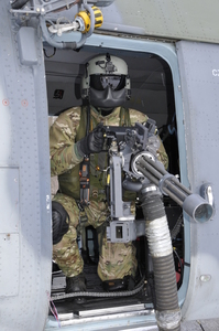 Střelec na palubě vrtulníku s rotačním kulometem M134D-H ráže 7,62 × 51mm Minigun
