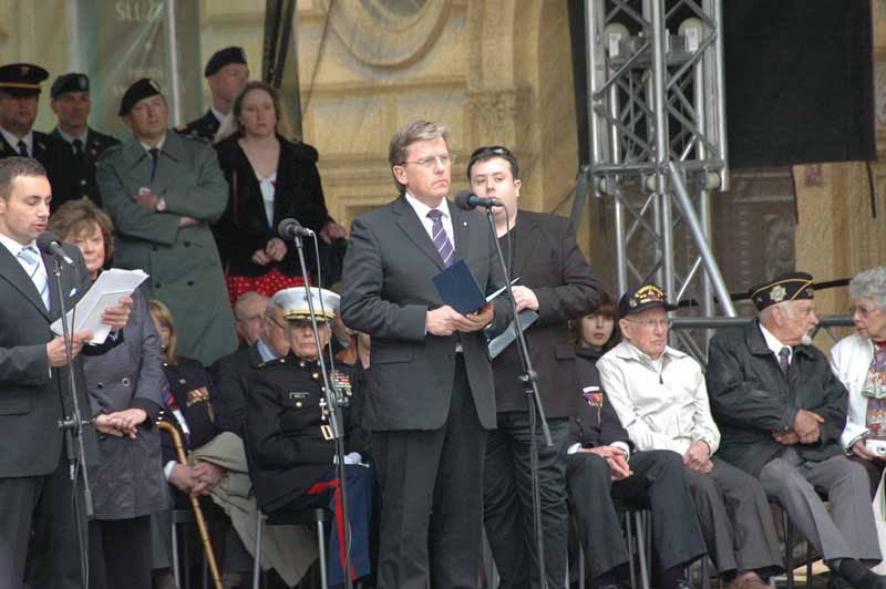 Osvobození západočeské metropole Plzně si připomněli na Americké třídě u památníku Díky Ameriko stovky Plzeňanů s mnoho vzácnými hosty, k nimž patřili především vojáci, kteří jim přesně před 64 lety přivezli svobodu. Mezi hosty setkání v Plzni byli nejen tajemník prezidenta republiky Ladislav Jakl, či předseda Poslanecké sněmovny Parlamentu ČR Miloslav Vlček, ale také představitelé Ministerstva obrany ČR a Armády České republiky - první zástupce náčelníka Generálního štábu AČR generálmajor Josef Prokš a velitel sil podpory brigádní generál Jaroslav Kocián. Přítomni byli a smuteční věnce k památníku položili i další představitelé státu a samosprávy i sdružení a dobrovolných organizací.