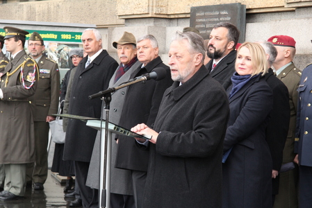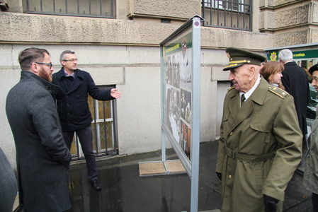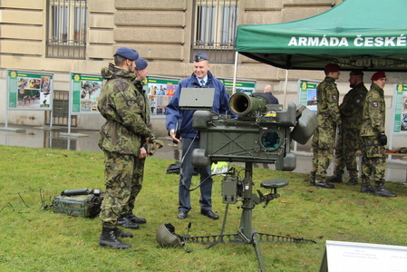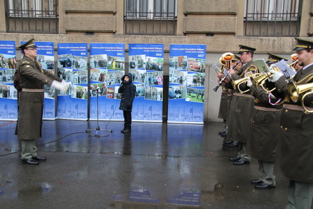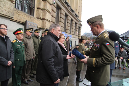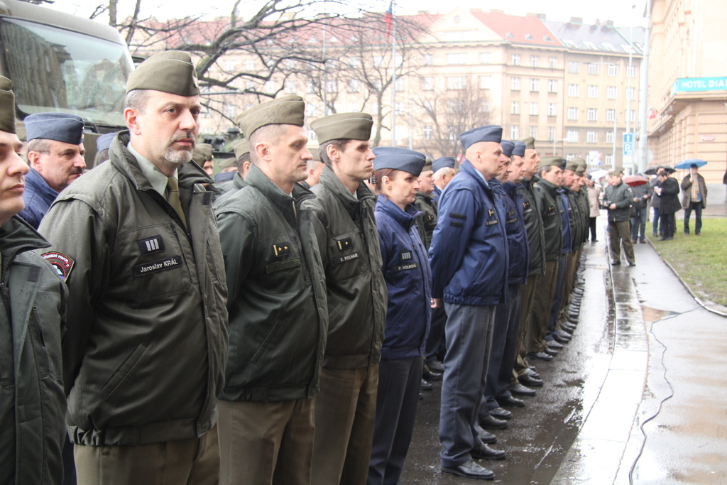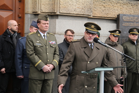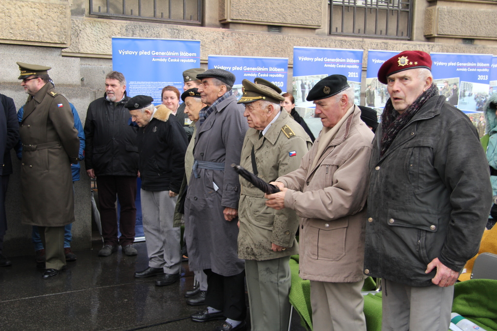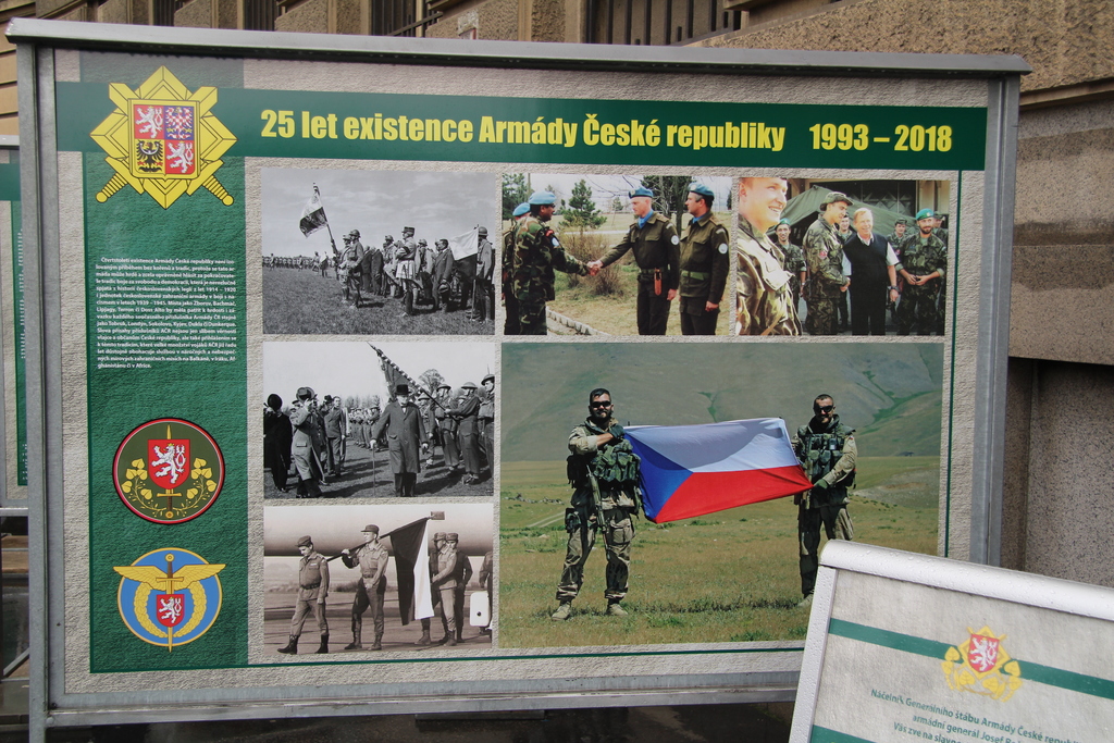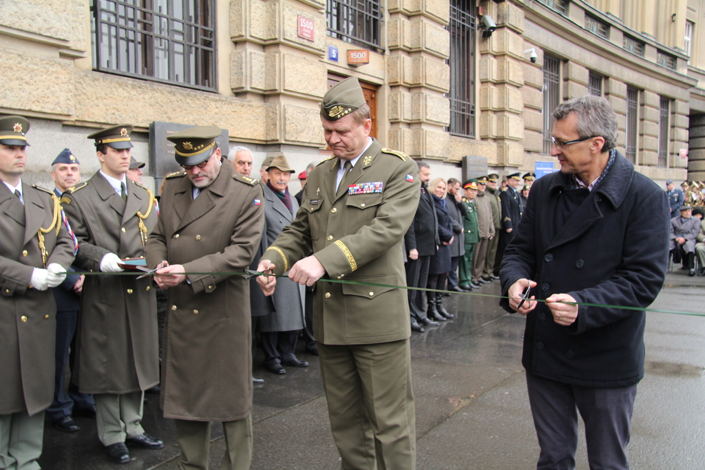 Hudební doprovod zajistil Jan Musil z Kühnova dětského sboru a Ústřední hudba AČR, v pozadí přehled všech výstav před budovou GŠ AČR