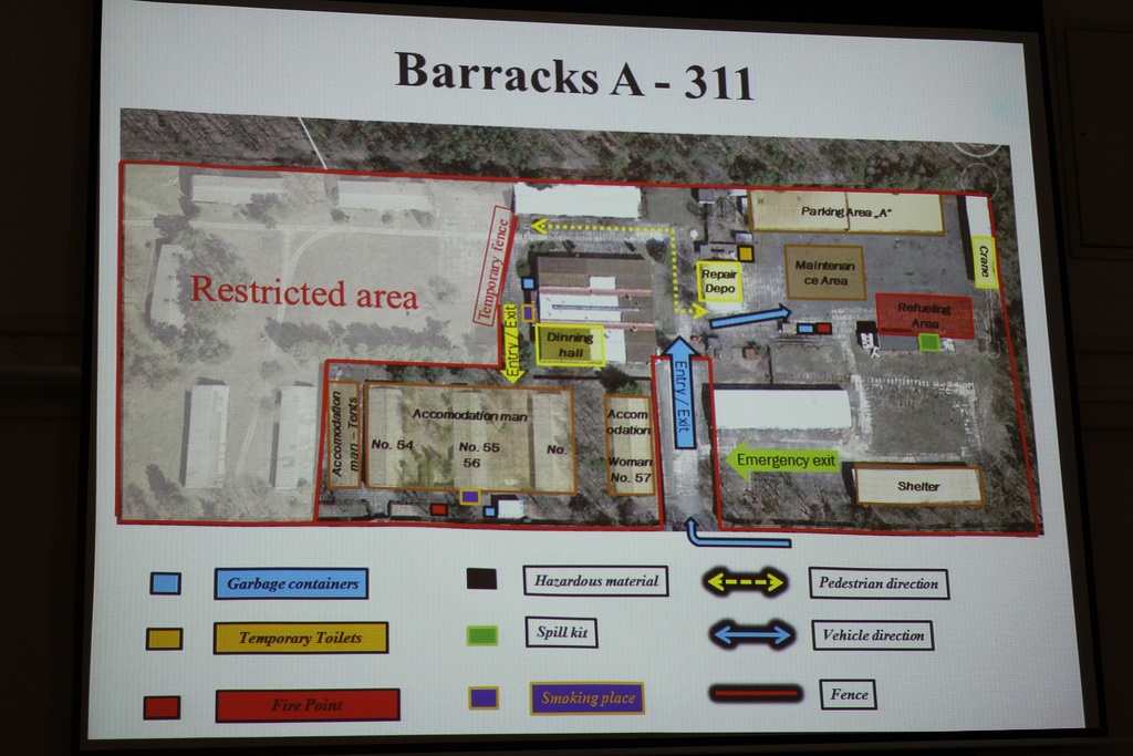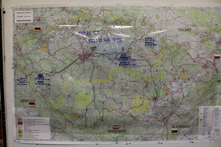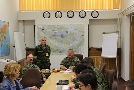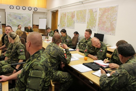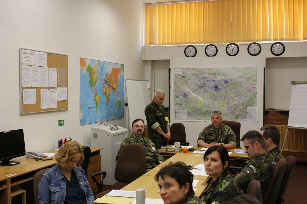 Náčelník HNS LOC plukovník Leštinský podává hlášení řídícímu cvičení plukovníkovi Kolomému
