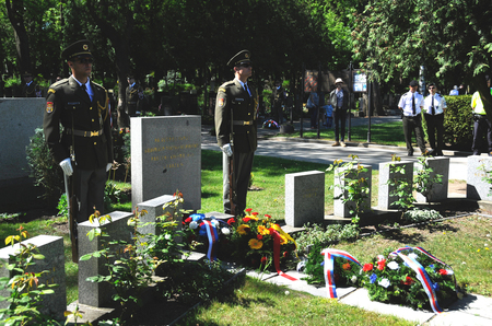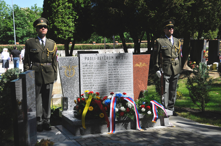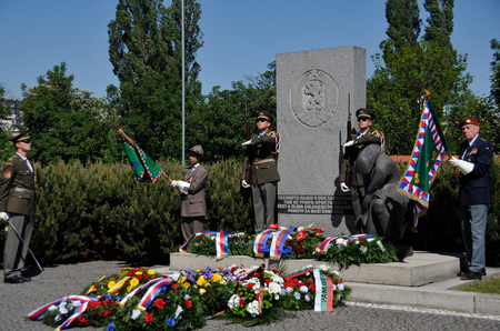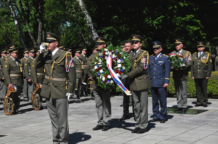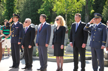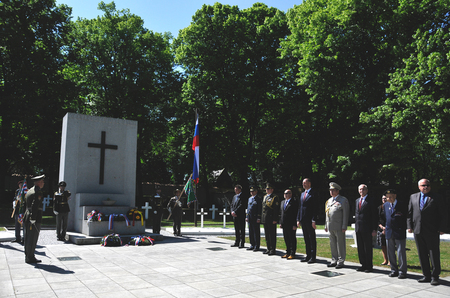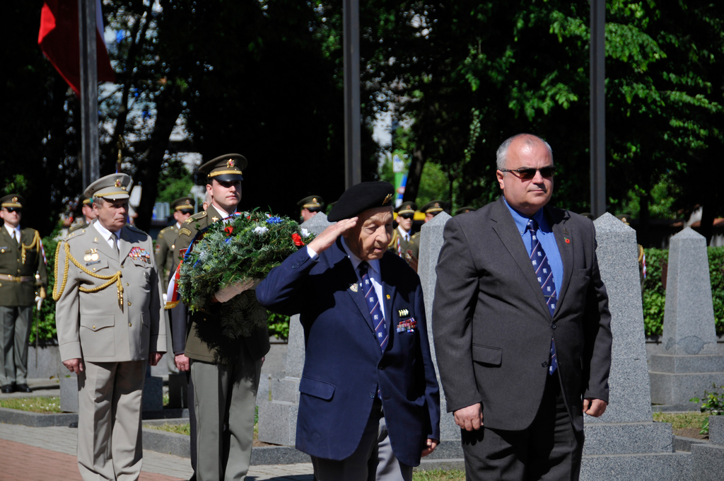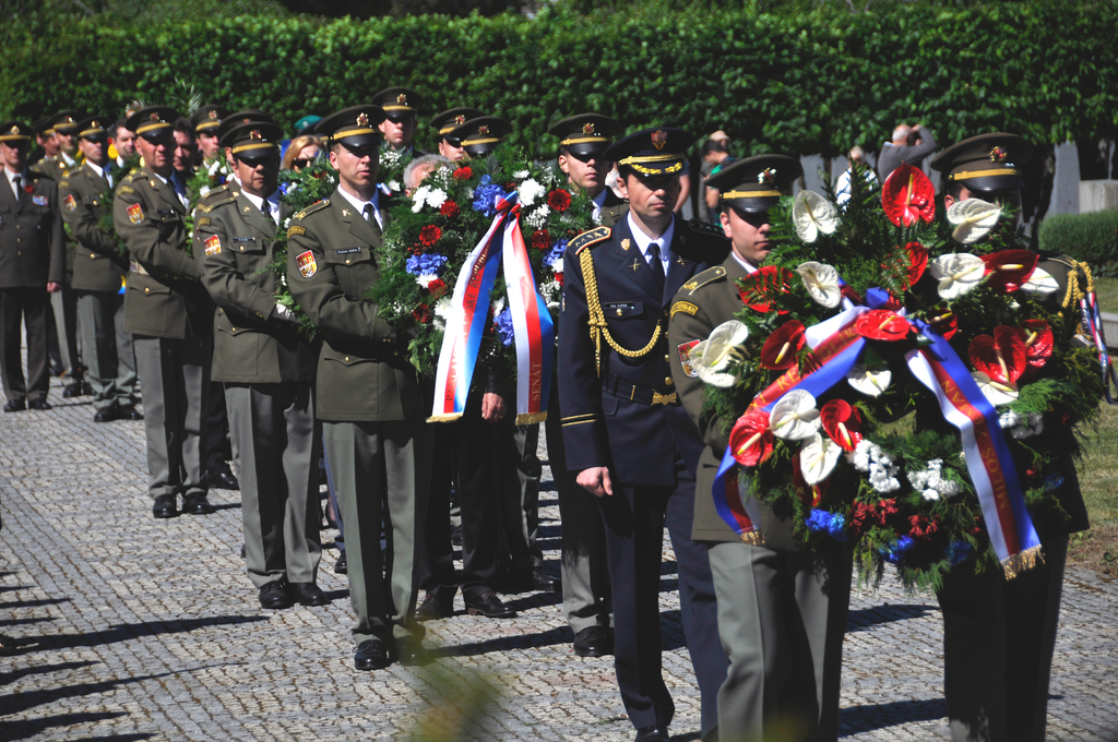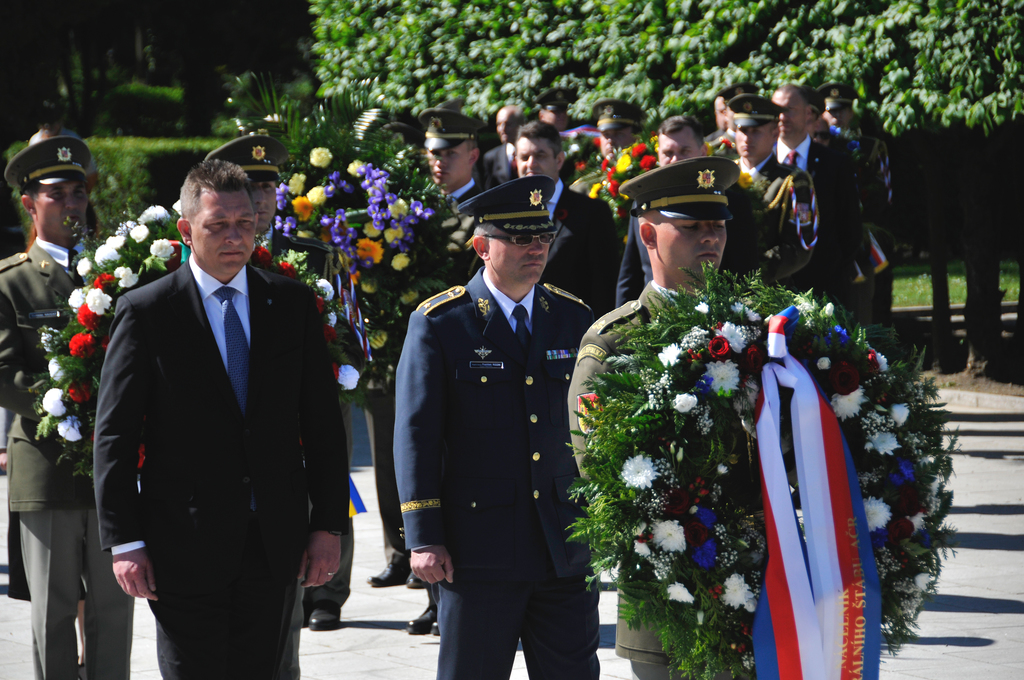 Smuteční věnce a kytice k pomníkům položili za Ministerstvo obrany a Generální štáb AČR státní tajemník MO Petr Vančura a generál František Ridzák