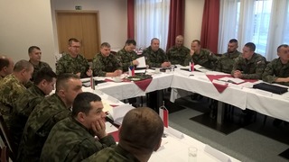 Zástupci Armády ČR (zleva: pplk. Marcel Křenek, plk. Jan Štěpánek, plk. Jiří David) při plánovací konferenci k mezinárodnímu cvičení armád V4 Czech Lion 2019