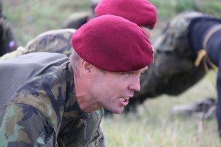 Náčelník skupiny výcviku AZ 43. výsadkového praporu Chrudim nadporučík Pavel Kinc držel s účastníky „basu“ a střihnul si i závěrečné kliky s účastníky po překážkové dráze