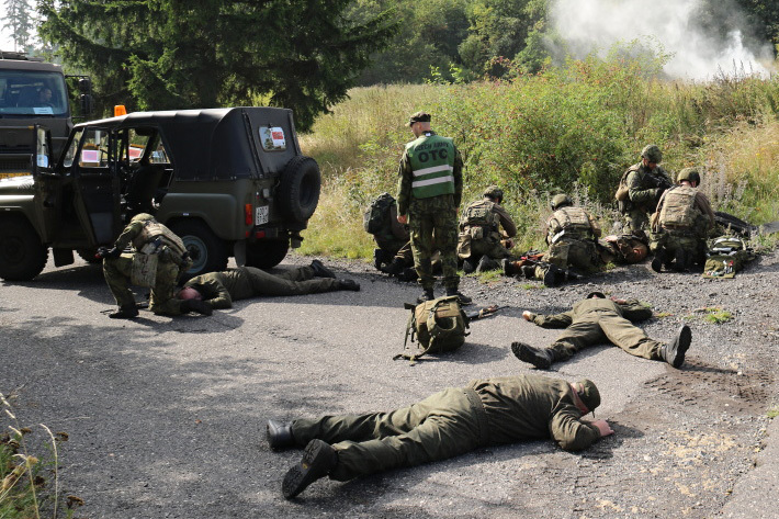Vše pod bedlivým dohledem instruktorů a rozhodčích. Řídící štáb tvořili kromě příslušníků Velitelství výcviku-Vojenské akademie i zástupci Velitelství pozemních sil, psovodi z Centra vojenské kynologie Agentury vojenského zdravotnictví AČR a příslušníci 11. SR BAF. Do cvičení se zapojili rovněž vojáci Aktivní zálohy Krajského vojenského velitelství Pardubice. Pro ně šlo o novou zkušenost.