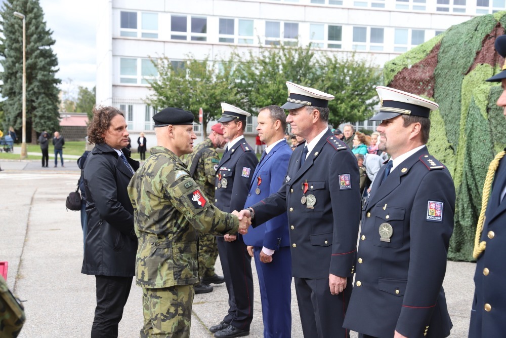 Plk. Bis předává ocenění a děkuje za spolupráci představitelům různých organizací v regionu