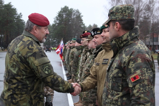 Armádní generál Aleš Opata se vítá s veliteli jednotek Alianční předsunuté přítomnosti