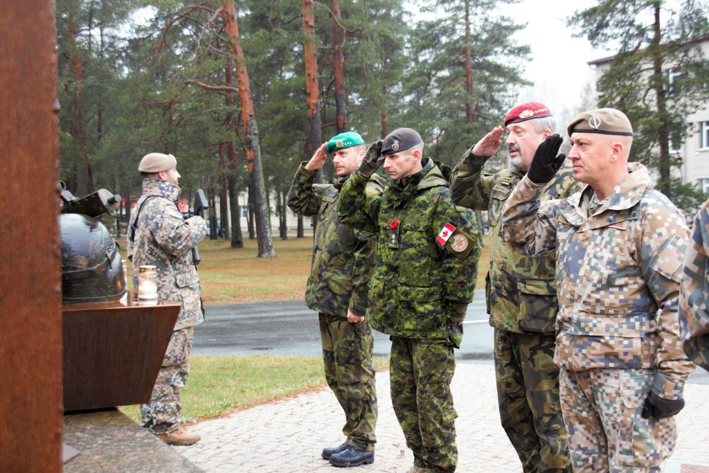 Nastoupené jednotky devíti členských států Alianční předsunuté přítomnosti na základně v Adaži v Lotyšsku