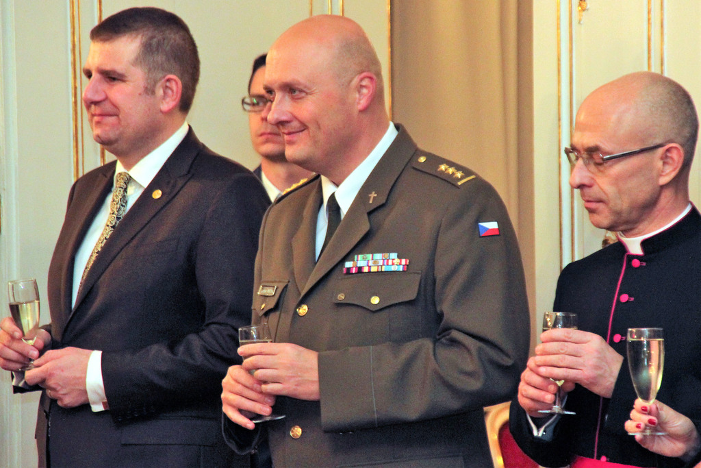 Na slavnostním setkání byl i hlavní kaplan Armády ČR Jaroslav Knichal (uprostřed).