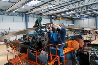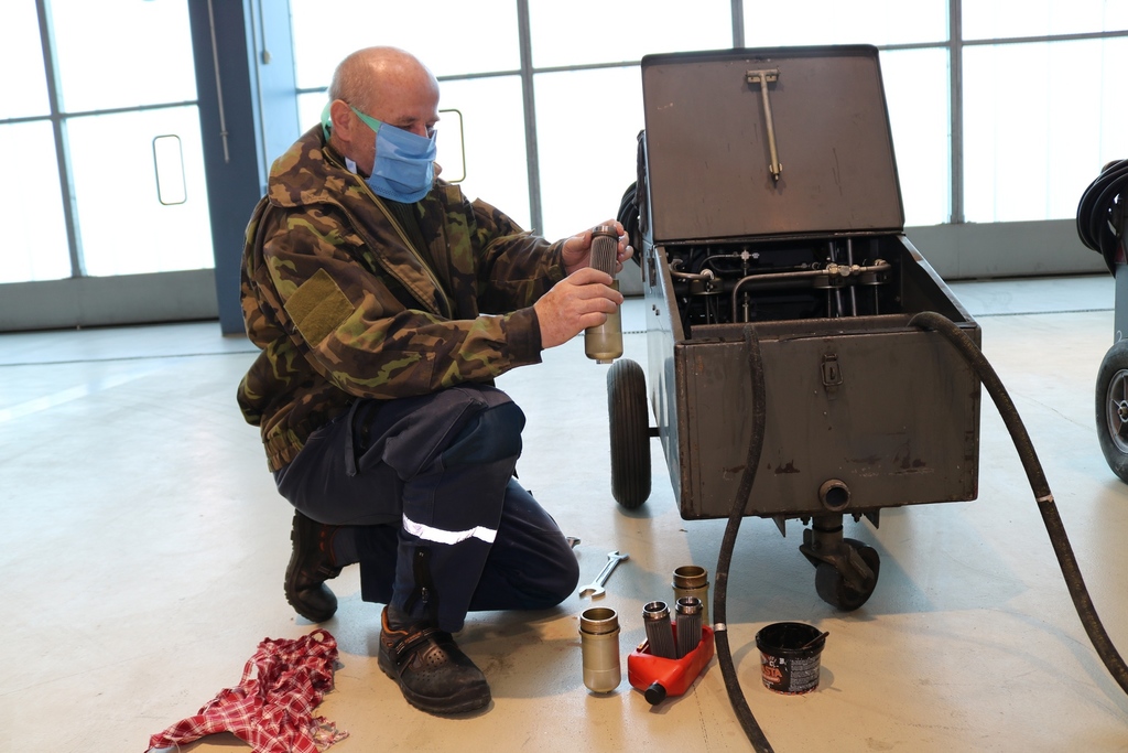 Kromě letecké techniky se provádí údržba také na pozemním vybavení. Zde kontrola a čištění filtrů hydraulického zdroje