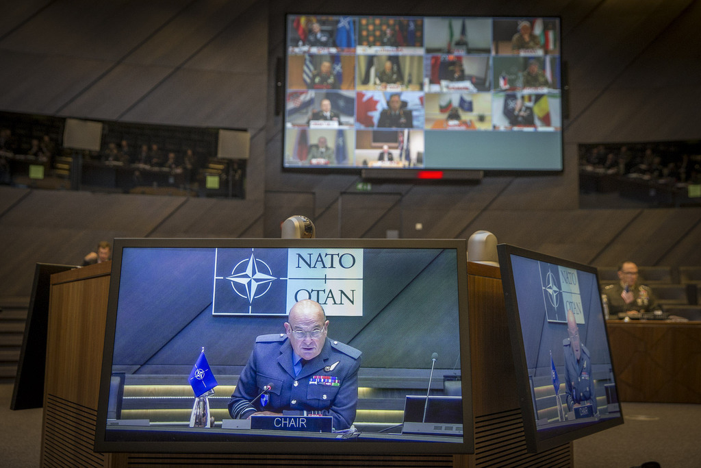 Videokonferenci zahájil předseda Vojenského výboru NATO vrchní maršál letectva Sir Stuart Peach