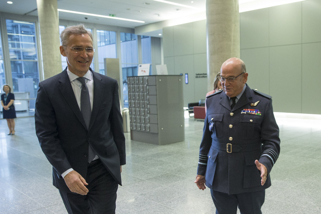 Generální tajemník NATO Jens Stoltenberg a vrchní maršál letectva Sir Stuart Peach