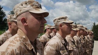 Generál Kopecký zdraví nastoupenou jednotku 20. Úkolového uskupení.