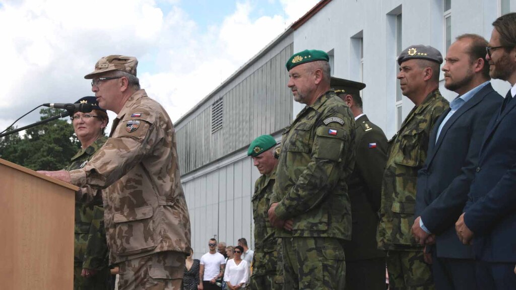 Pplk. Hatala ve svém projevu děkuje vojákům i rodinným příslušníkům.