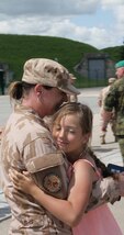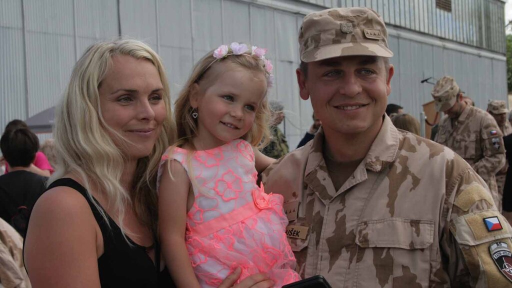 Vřelé objetí účastníků mise a rodinných příslušníkům