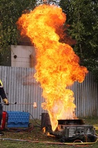 Vojenští hasiči cvičili v ohňovém trenažéru Fire Dragon 9000. Jako první v Česku.