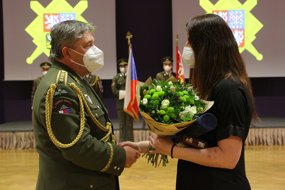 Armádní generál Aleš Opata ocenil vojáka AZ četaře Antonína Křičenského in memoriam, ocenění převzala Radka Křičenská