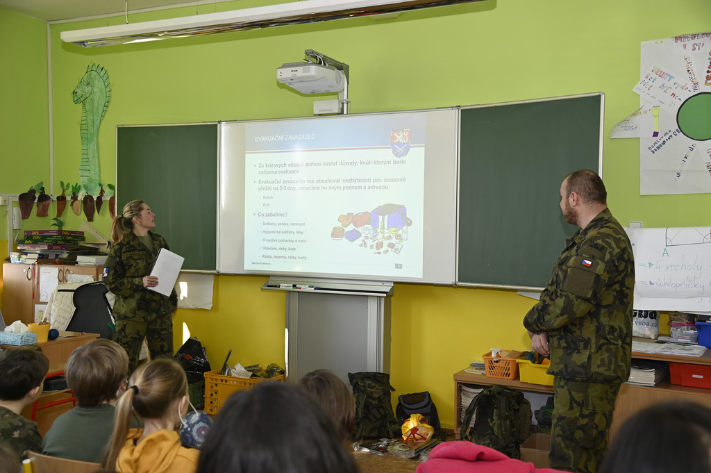 Žáci získali základní informace, jak funguje Armáda České republiky, co je branná povinnost a jak se mohou připravit na krizové situace.