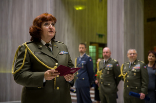 Nově jmenovaná plukovnice Eliška Petráková pronesla děkovnou řeč za všechny nově jmenované plukovníky