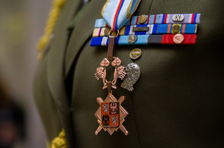 Generál Karel Řehka při předávání čestných odznaků Armády ČR Za zásluhy II. a III. stupně l