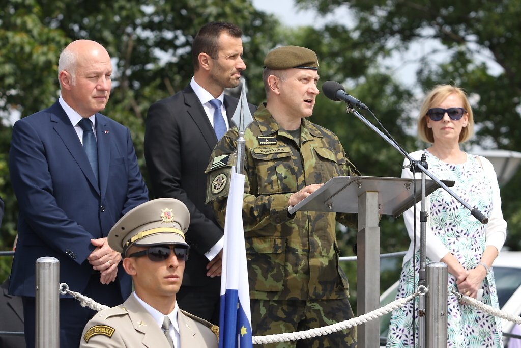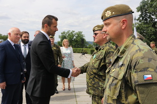 Defilé náměstka ministryně obrany Daniela Blažkovce a zástupce velitele Velitelství pro operace brigádního generála Václava Vlčka