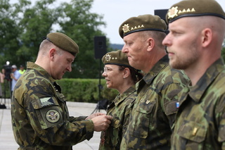 Zástupce velitele Velitelství pro operace brigádní generál Václav Vlček ocenil vojáky čestnými odznaky AČR Za zásluhy