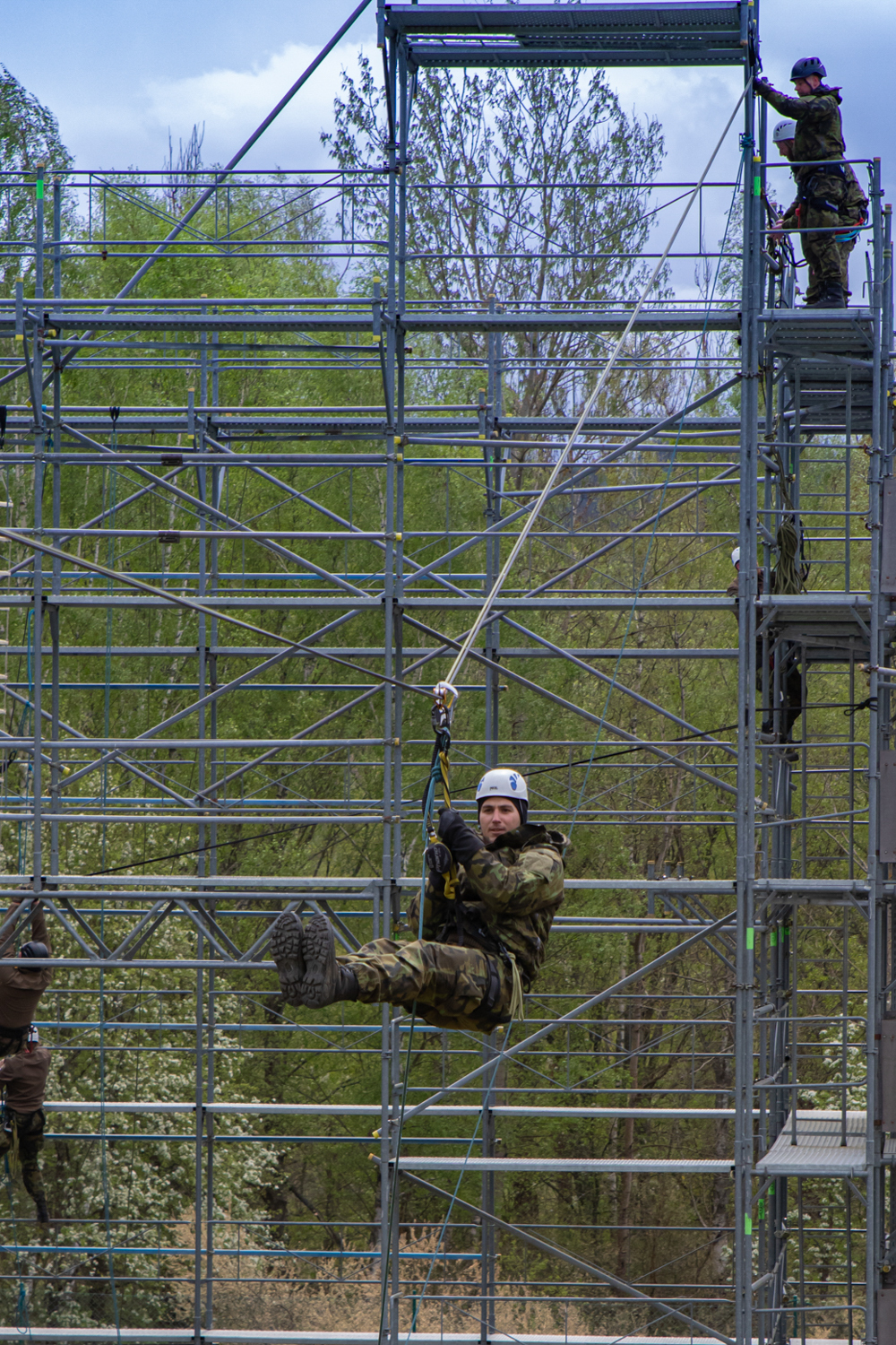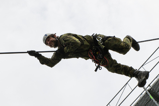 Fixní cesta, jež prověřila dovednosti vojáků, byla zakončena sjezdem, kterému se říká ziplajna.