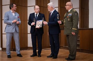 Knihu 601. na Tora Bora pokřtili prezident republiky Petr Pavel, Ondrej Páleník a ředitel vydavatelství Grada Antonín Kočí