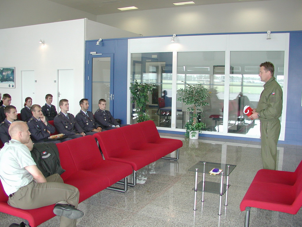 Po Petru Jirmusovi se slova ujal zástupce velitele letecké základny ve Kbelých major Ing. Jiří Vávra, který studenty podrobně seznámil s posláním a úkoly dopravního letectva a s leteckou technikou používanou u 24. dopravního křídla. Studenti využili jeho přítomnosti i k zodpovězení dotazů, týkajících se profesního a kariérního růstu armádních pilotů. Odpolední část programu pobytu studentů VA na kbelském letišti byla věnována prohlídce Leteckého muzea VHÚ Praha s odborným výkladem. Početností a kvalitou sbírek patří k největším leteckým muzeím v Evropě. V současnosti má ve sbírkách 275 letadel, z nichž 85 je vystaveno ve čtyřech krytých halách, 25 v nekrytých expozičních prostorech, 155 je uloženo v depozitářích a 10 letuschopných je provozováno. Řada letounů patří ke světovým unikátům. Studenti tak mohli obdivovat např. první stíhací letouny Aero A-18, SPAD nebo Avia B-534, z období II. světové války bitevní letoun Iljušin Il-2, stíhací letouny Lavočkin La-7 nebo Spitfire, pozdější proudové letouny řady MiG, Suchoj apod.