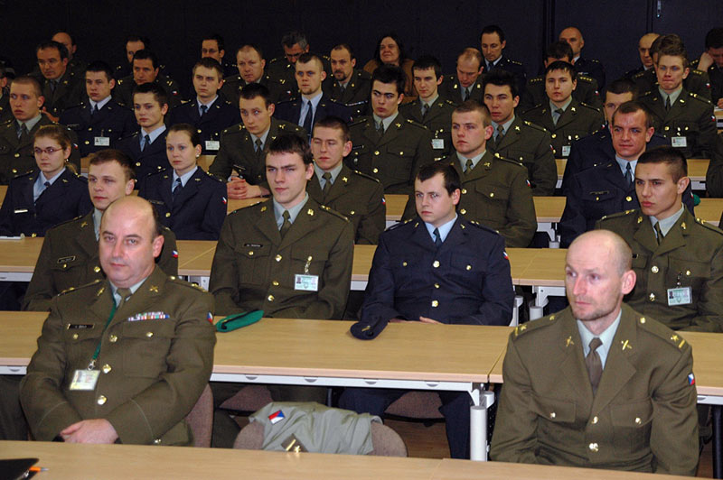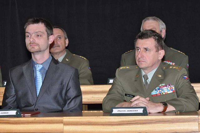 Slavnostní shromáždění na UO v Brně, v popředí plk. MUDr. Mojmír Mrva, bývalý velitel polní nemocnice AČR