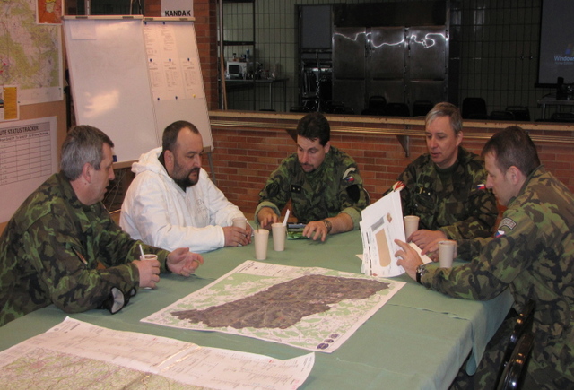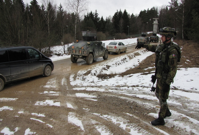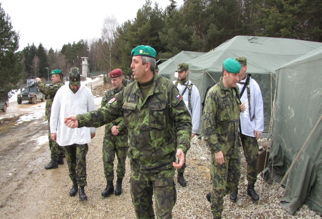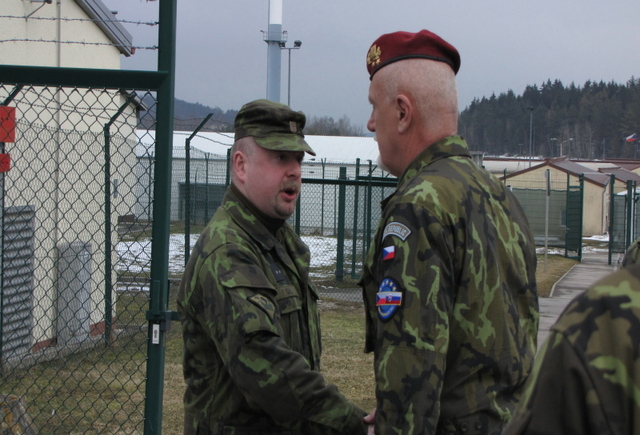 Plukovník Ivo Střecha seznamuje hosty s prostory základny, které využívají čeští vojáci