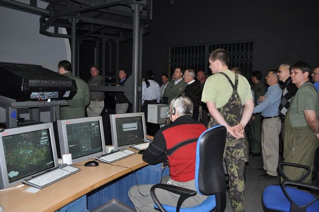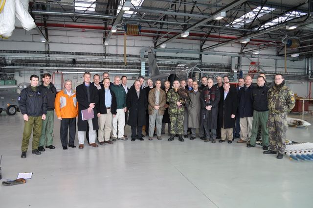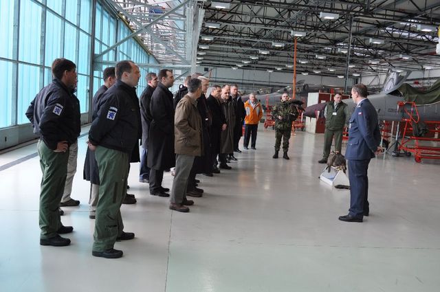 Studenti U.S. Air War College s doprovodem, technickým personálem a biologickou ochranou letiště.