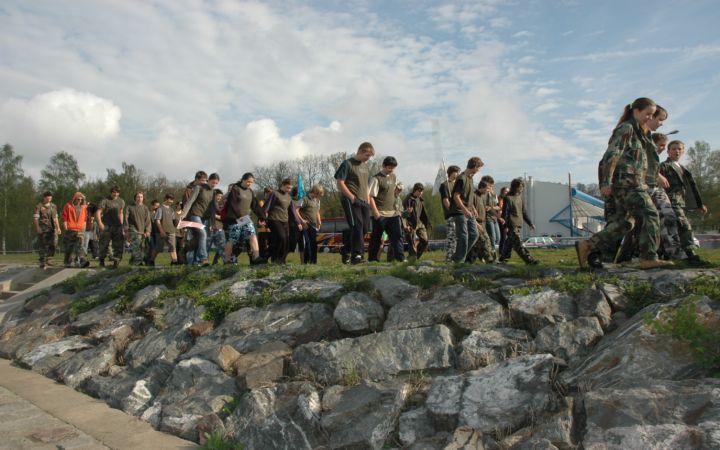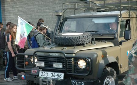 1.5.2010 Účastníci soutěže Osvoboď Plzeň se zdraví s českými vojáky