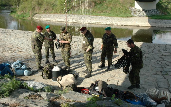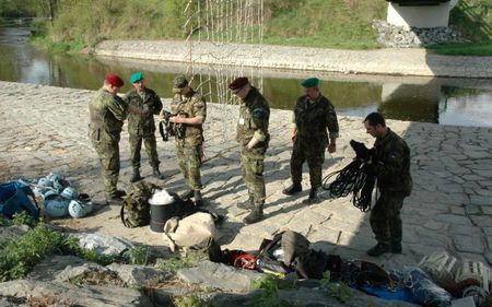 1.5.2010 Ženisté s vojáky aktivní zálohy připravují výstup na most