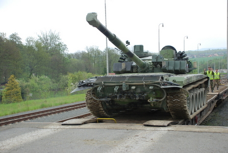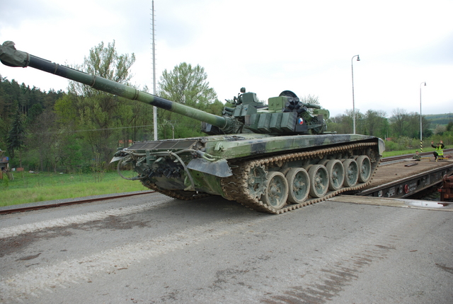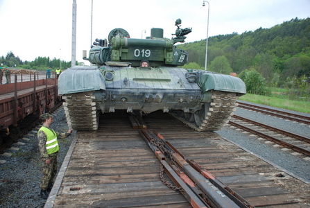 5.5.2010 Tank T-72 vyjíždí z vagonu na rampu