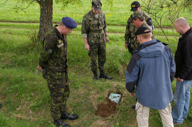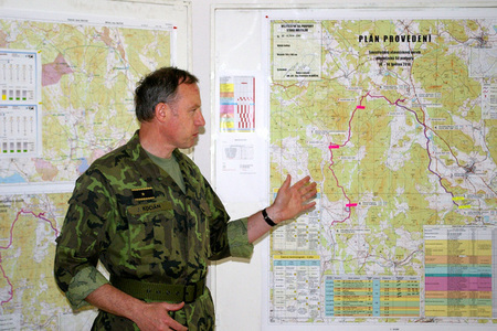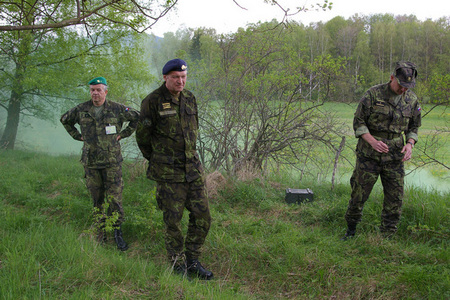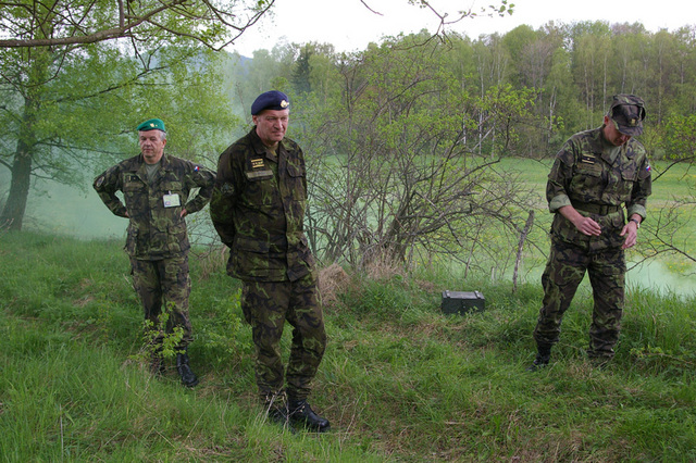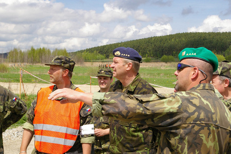 Generálové Picek a Kocián si procházejí trasu improvizovaného minového nebezpečí