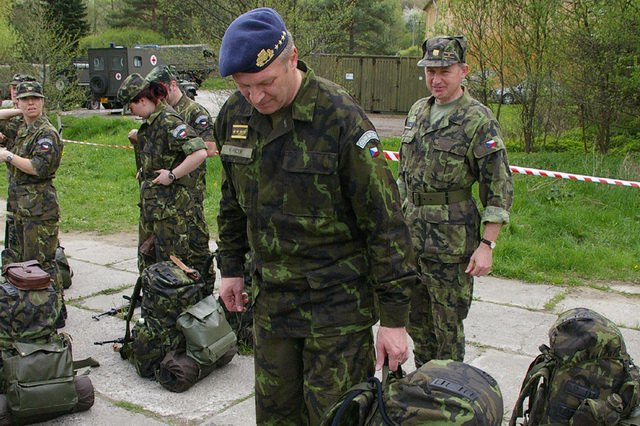 Generál Picek si potěžkal váhu batohů, které vojáci ponesou dva dny na zádech