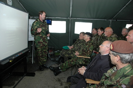 Úvodní brífink na velitelství britské 20. obrněné brigády, která zabezpečuje, řídí a koordinuje veškeré vojenské operace
