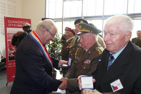 Starosta města Dunkerque oceňuje české válečné veterány, přímé účastníky bojů u Dunkerque