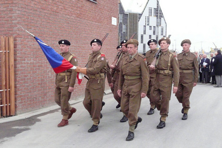 Defilé čestné jednotky v dobových uniformách vojáků 1. československé