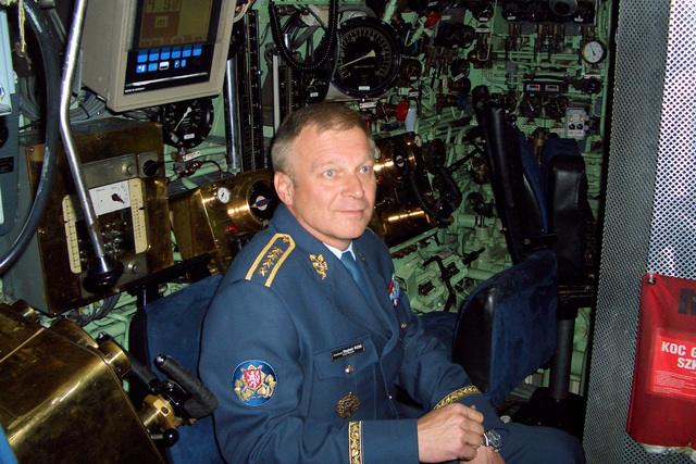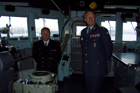 Na velitelském můstku fregaty třídy OHP Kazimierz Pulawski s kapitánem lodi Piotrem Niecem