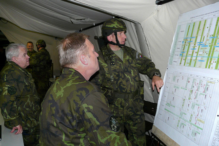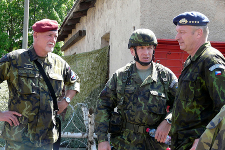 Velitel společných sil generál Hynek Blaško, velitel 4. brn plk. Miroslav Hlaváč a generál Vlastimil Picek, NGŠ AČR