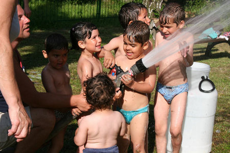 Hasiči přispěli svou technikou k osvěžení v parném odpoledni