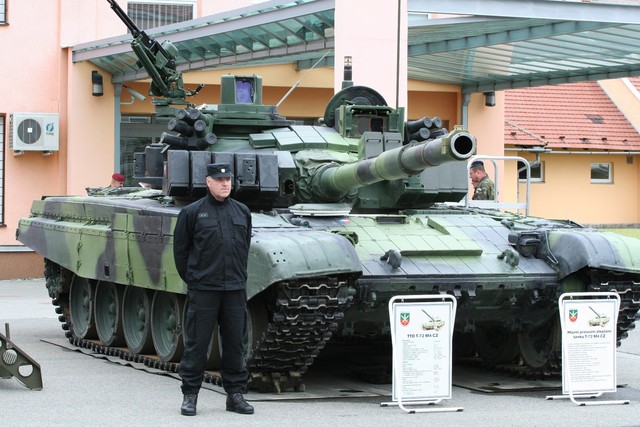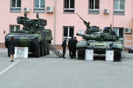 Ukázka techniky. Obrněné vozidlo Pandur a tank T-72M4
