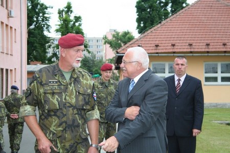 Velitel SpS generál Blaško vítá prezidenta Václava Klause
