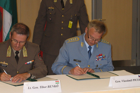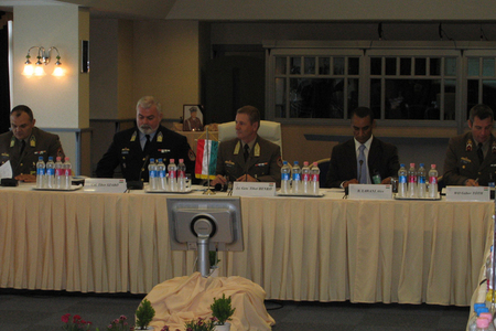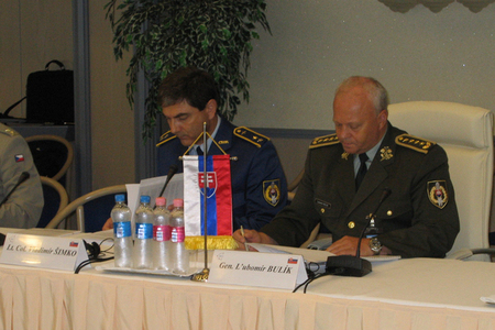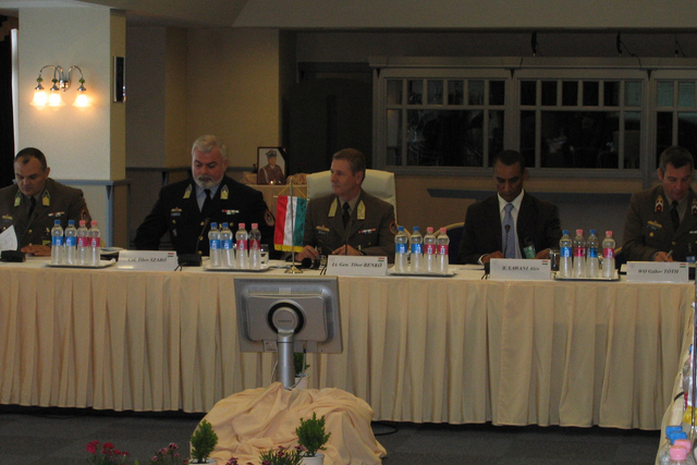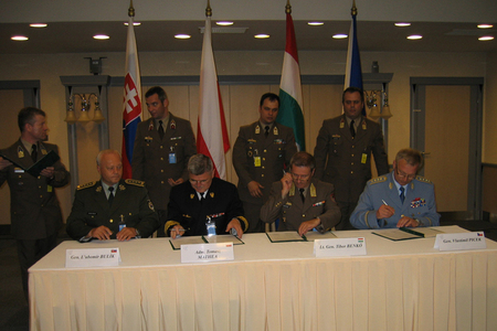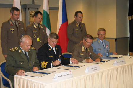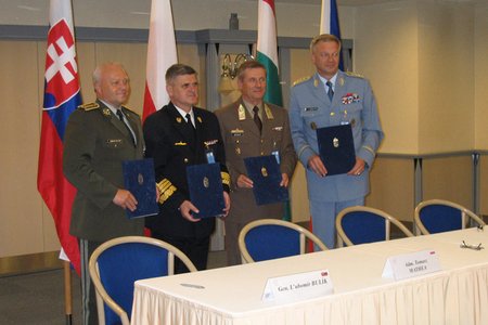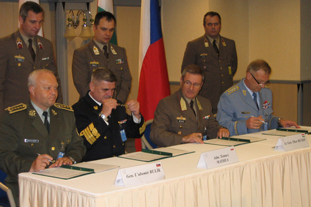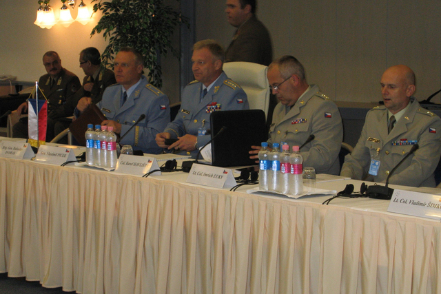 Česká delegace: zleva brigádní generál Dvořák, armádní generál Picek, plukovník Havlišta a podplukovník Luky
